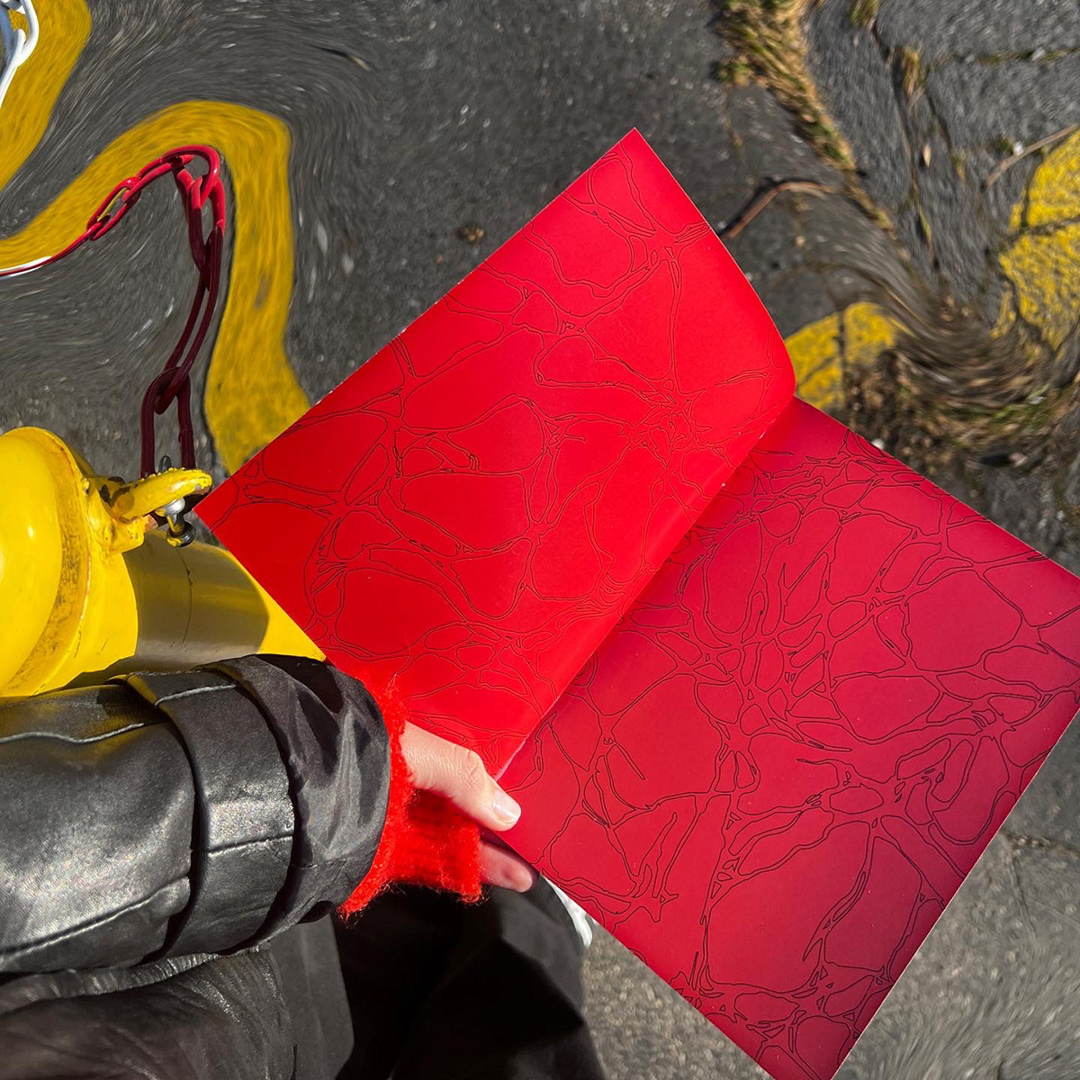 The curved structure of the space of your creation. I cut a red piece of sky.